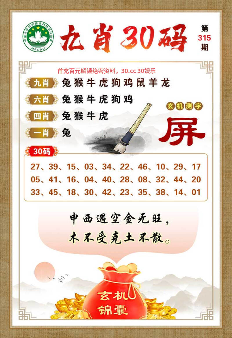 | 315期:★绝杀三肖★【猪龙猴】开:虎04中 |